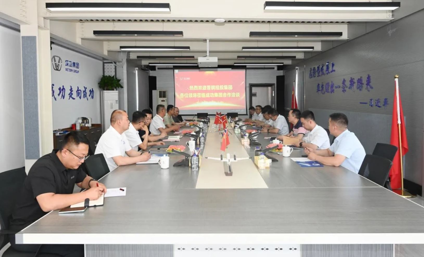 陈国东总裁对集团副总经理陈友一行的到访表示热烈欢迎,并高度赞赏晋钢近年来在高质量发展中取得的显著成效。他详细介绍了成功集团的发展历程、核心资源禀赋及业务布局(涵盖煤炭产销、汽车制造与销售、通用航空服务等多元领域),并围绕深化双方合作的具体路径提出建设性意见。